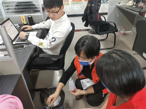 志愿者宣講員利用垃圾分類指導(dǎo)手冊和發(fā)單宣傳單,為企業(yè)員工們生動形象地講述了什么是垃圾分類,為什么要實施垃圾分類,垃圾分類企業(yè)具體怎樣實施布置。
