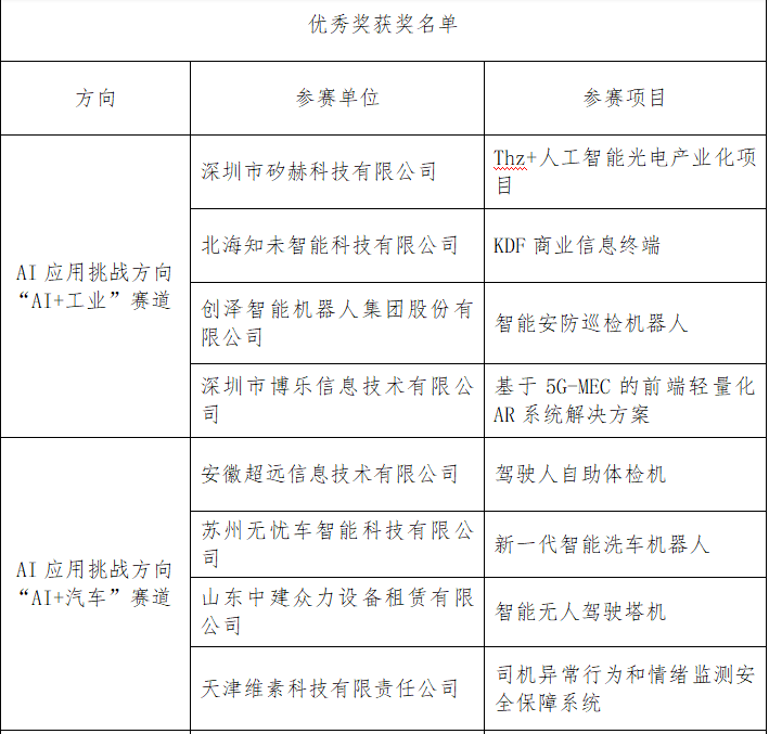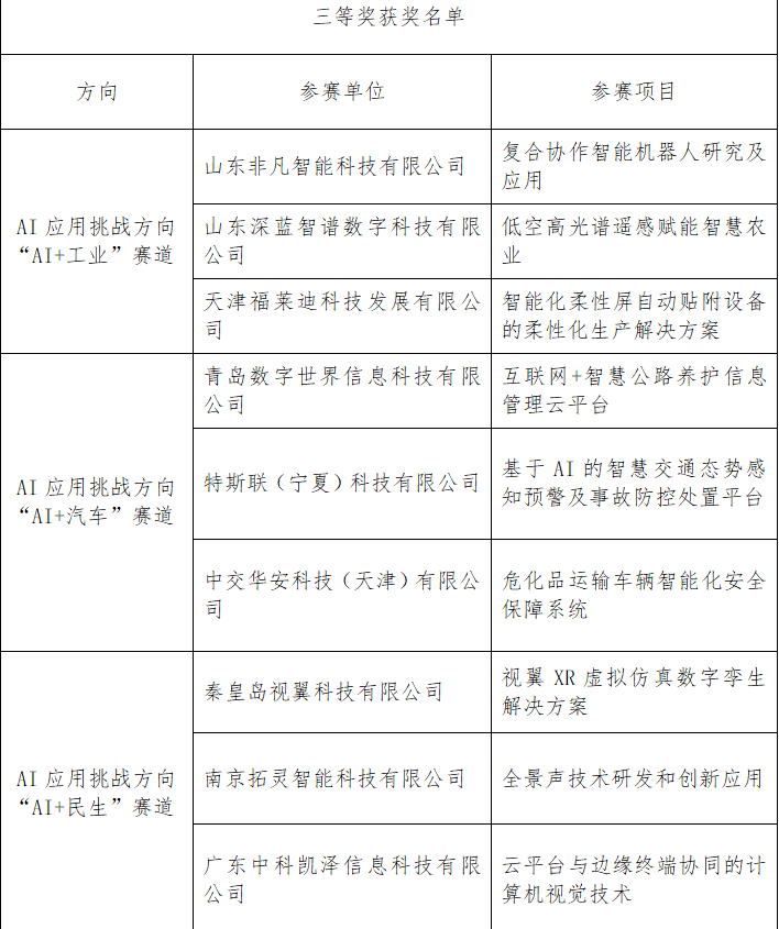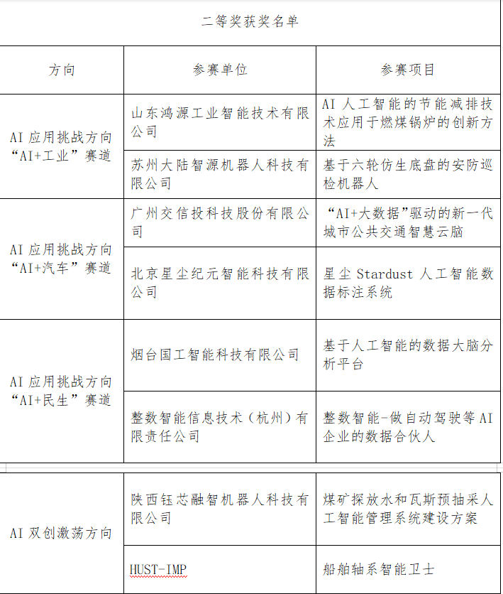 附:第六屆“創(chuàng)客中國”人工智能中小企業(yè)創(chuàng)新創(chuàng)業(yè)大賽決賽獲獎名單
