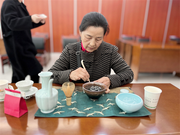 發(fā)布時間:2023-03-03 17:08:14 | 來源:中國網(wǎng) | 作者:辛文 | 責(zé)任編輯:喬沐3月3日,在茶香環(huán)繞的氛圍下,15位轄區(qū)黨員代表、統(tǒng)戰(zhàn)代表、婦女代表相聚在華豐社區(qū)活動室,在宋代點茶志愿者章老師的帶領(lǐng)下,開展“傳承宋韻文化,點燃亞運激情”主題活動,在茶湯上繪出你我心中的亞運盛事。