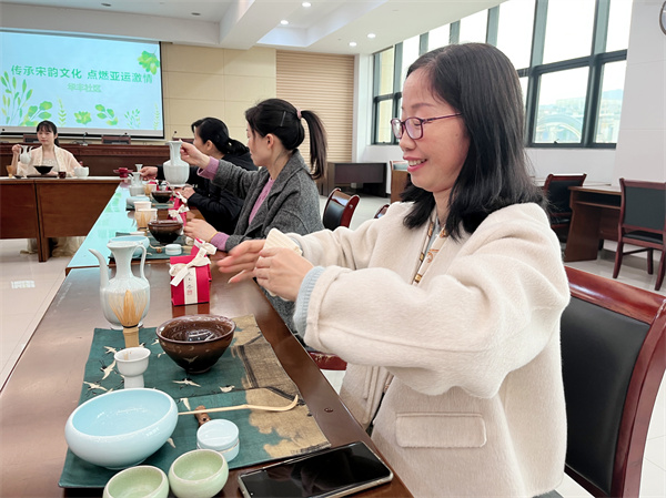 通過此次活動,大家一同體驗了宋式美學(xué)的飲茶方式,讓大家走進、了解中國茶文化,并用點茶技藝開啟亞運會新的打開方式。
