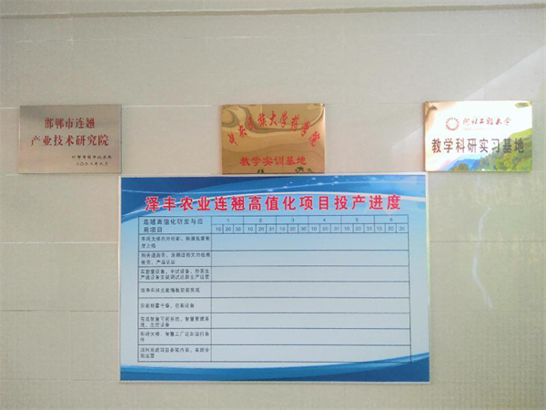 武安市澤豐農(nóng)業(yè)科技有限公司先后被中央民族大學藥學院建立為教學實訓基地、河北工程大學建立為教學科研實習基地。