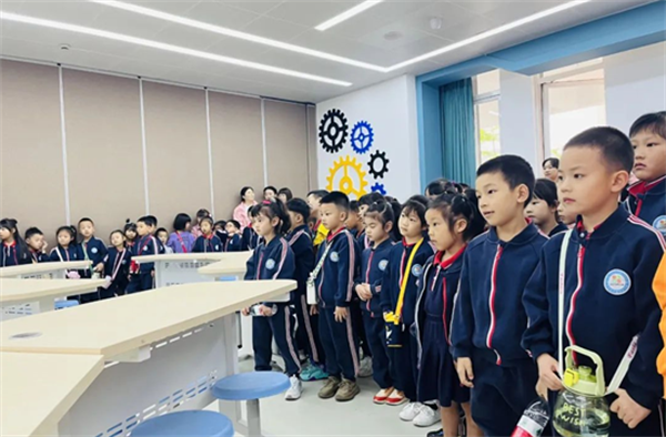 校園內(nèi)寬敞的操場、嶄新的教學(xué)樓、整潔的環(huán)境深深吸引著孩子們好奇的眼神。在小姐姐講解員的帶領(lǐng)下,壤娃們參觀了走廊、操場、薈英亭,還有小學(xué)的各功能室,如:扎染室、舞蹈室、實(shí)驗(yàn)室…