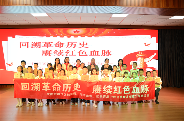發(fā)布時(shí)間:2023-06-08 15:12:53 | 來(lái)源:中國(guó)網(wǎng) | 作者:李剛 | 責(zé)任編輯:?jiǎn)蹄?/span>為培育和踐行社會(huì)主義核心價(jià)值觀,將紅色檔案資源融入校園文化,營(yíng)造紅色檔案育人氛圍。在第十六個(gè)國(guó)際檔案日到來(lái)之際,由溫江區(qū)檔案局主辦,溫江區(qū)檔案館承辦,溫江區(qū)教育局協(xié)辦的“回溯革命歷史賡續(xù)紅色血脈”紅色檔案進(jìn)校園專(zhuān)題活動(dòng)在溫江區(qū)東大街一小隆重舉行。