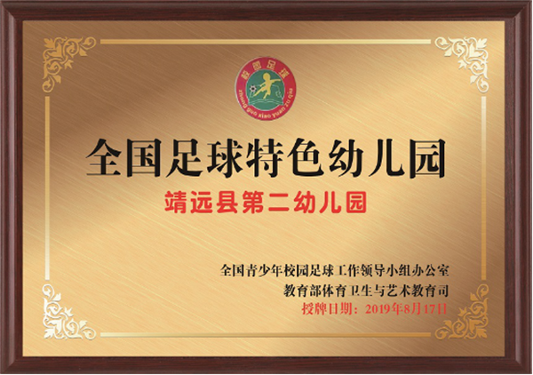 春花秋實,碩果累累。靖遠第二幼兒園先后被評為“白銀市巾幗文明崗”、“白銀市教育系統(tǒng)先進集體”、“靖遠縣教育系統(tǒng)先進集體”、“白銀市市級文明單位”、“白銀市市級語言文字示范校”、“省級衛(wèi)生先進單位”、“白銀市民族團結(jié)進步示范單位”、“省級文明單位”、“省級新時代語言文字示范?!?。并先后與靖遠縣博物館、靖遠縣圖書館、靖遠縣紅軍渡河戰(zhàn)役紀念館簽約為“館校共建”基地。2019年被全國青少年校園足球工作領(lǐng)導小組辦公室、教育部體育衛(wèi)生與藝術(shù)教育司授牌“全國足球特色幼兒園”。