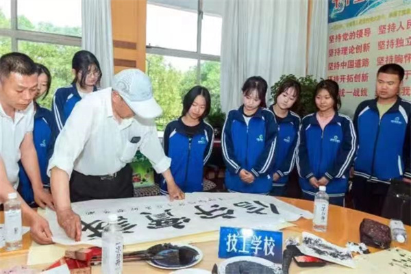 為加強(qiáng)校園文化建設(shè),用高雅藝術(shù)感染學(xué)生、引導(dǎo)學(xué)生學(xué)習(xí)感悟中華優(yōu)秀傳統(tǒng)文化精髓,增強(qiáng)學(xué)生學(xué)習(xí)中華書法繪畫的濃厚興趣,6月19日,由平川區(qū)文聯(lián)主辦、靖煤技校承辦的“高雅文化進(jìn)校園,墨翰飄香鑄?;辍被顒釉诟拭C省煤炭工業(yè)技工學(xué)校舉辦。