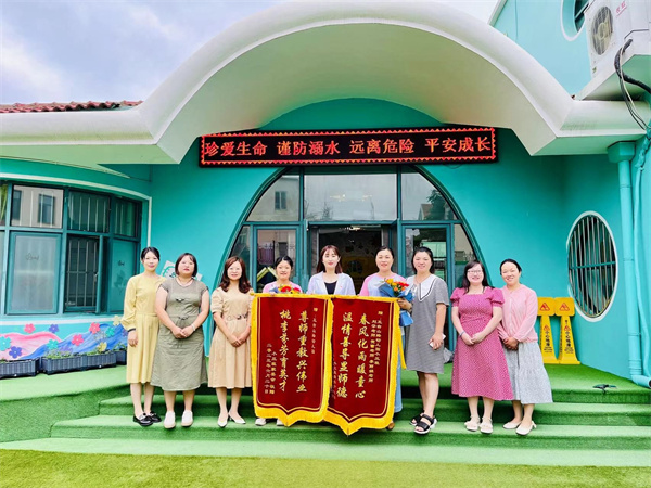 隨后,荒里幼兒園及五臺山路分園園長薛翠紅對社區(qū)群眾的到來表示熱烈地歡迎,并向大家介紹了青西新區(qū)教育的發(fā)展藍圖,并以“共繪同心圓·攜手譜新篇”為題,面向群眾代表進行我園教育成果匯報,同時得到各位代表的高度贊許。與鄰為友,與卓越者同行。荒里幼兒園還為各位街坊朋友們準(zhǔn)備了一份特殊的“禮物”,從努力向前到嶄露頭角,一路上離不開各界對荒里幼兒園的鼎力配合與支持,這一張小小的獎狀,表達著感謝。同時也希望大家懷揣共同的教育夢想,堅守共同的教育情懷,深化溝通聯(lián)系,成為互相助力,共同向上的“最佳街坊”。在美好的季節(jié),總是會遇到美好的事,五臺山路分園小三班的家長們將錦旗送到幼兒園,錦旗上真摯的言語,代表家長的心聲是對幼兒園工作的贊許與肯定更是對教師們用愛詮釋最美教育的認可。薛園長及老師們紛紛表示將一如既往,不負重托,砥礪前行在教育崗位上播撒愛、傳遞愛,讓教育透出生命的暖意,讓孩子們在生動活潑的集體生活中體驗快樂、茁壯成長。