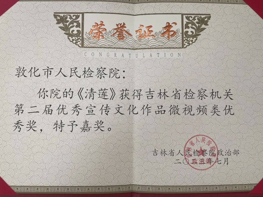 敦化市人民檢察院6部作品獲獎(jiǎng)