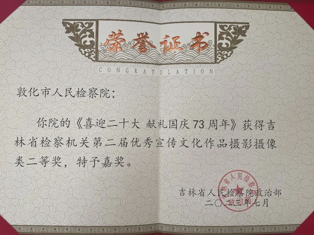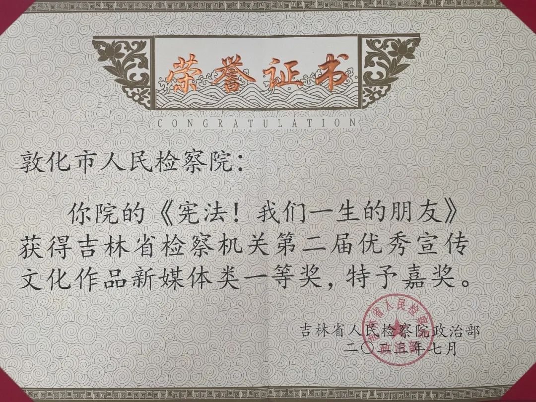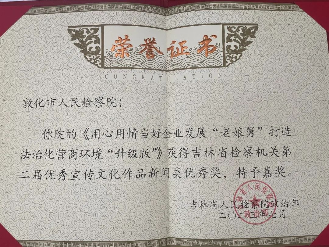 敦化市人民檢察院獲獎(jiǎng)情況