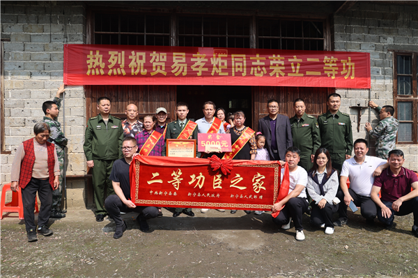 發(fā)布時(shí)間:2024-05-11 16:58:55 | 來(lái)源:中國(guó)網(wǎng) | 作者:鄢躍斌、余和豐、陳德凱 | 責(zé)任編輯:夏竹“兒子在部隊(duì)立了二等功,今天部隊(duì)和地方領(lǐng)導(dǎo)親自上門送喜報(bào),還上了電視,作為軍屬感到無(wú)比榮光。我們?nèi)視?huì)一如既往地支持他在部隊(duì)安心服役,希望他能再立新功、報(bào)效祖國(guó)。”“我們也要向他學(xué)習(xí),參軍入伍,建功立業(yè),保家衛(wèi)國(guó)……”。日前,湖南省新寧縣崀山鎮(zhèn)崀山腳下的雙江村,鑼鼓喧天,鞭炮齊鳴,鄉(xiāng)親們用最樸實(shí)的儀式迎接正在部隊(duì)服役的二等功臣易孝炬回到家鄉(xiāng),易孝炬的父母感激地道出心聲。同時(shí)其立功受獎(jiǎng)的事跡感染激勵(lì)著在場(chǎng)的每一位熱血青年,大家紛紛表示要向功臣看齊學(xué)習(xí)。