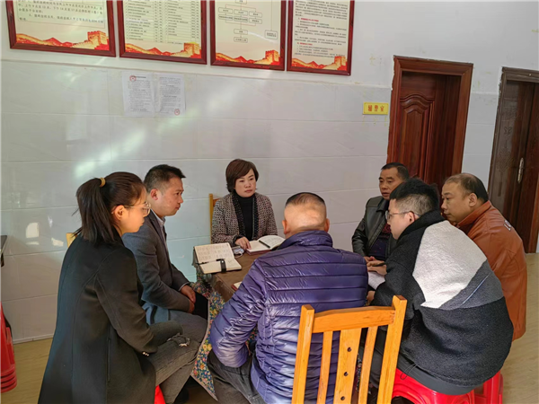 威溪鄉(xiāng)紀(jì)委工作人員走村入戶宣傳"小額信貸"政策(李紅艷攝影)
