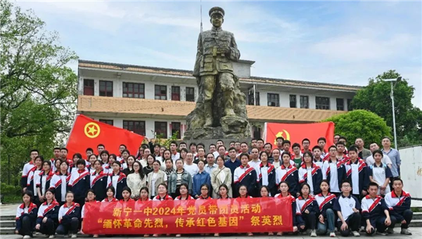 “同學(xué)們,革命先輩用鮮血和生命換來(lái)了我們今天的幸福生活,他們是民族的英雄,我們要永遠(yuǎn)銘記!”新寧一中初二學(xué)生站在宛旦平烈士銅像前莊嚴(yán)地進(jìn)行發(fā)言。2024年清明,新寧一中在宛旦平故里紅色文化教育基地開(kāi)展清明祭英烈活動(dòng),師生們向宛旦平銅像獻(xiàn)上花籃,向烈士紀(jì)念碑敬獻(xiàn)鮮花,鞠躬默哀,同學(xué)們立志成為繼續(xù)革命傳統(tǒng)、續(xù)航民族復(fù)興的新時(shí)代好少年。