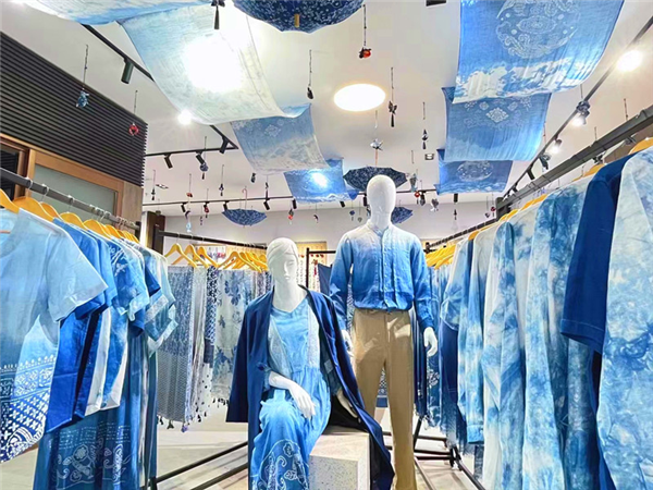 “我們以‘藍(lán)色空間印象’為主題,提煉其飄逸柔美之感,以靈動(dòng)的姿態(tài)展現(xiàn)出藍(lán)印花布的歷史更迭?!鄙坳?yáng)藍(lán)印花布非遺傳人羅沙沙表示,公司設(shè)計(jì)實(shí)現(xiàn)了非遺產(chǎn)品時(shí)間與空間的跨越,已經(jīng)成為當(dāng)?shù)氐撵n麗名片。