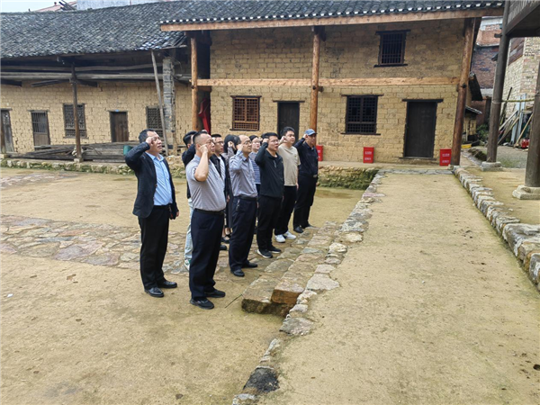 圖:市委第一巡察組臨時黨支部在袁國平故居重溫入黨誓詞