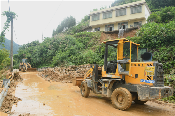 清理公路塌方保暢通。(新邵縣委宣傳部供圖)
