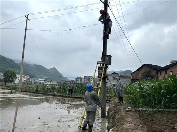 緊急搶修電力設(shè)備。(新邵縣委宣傳部供圖)