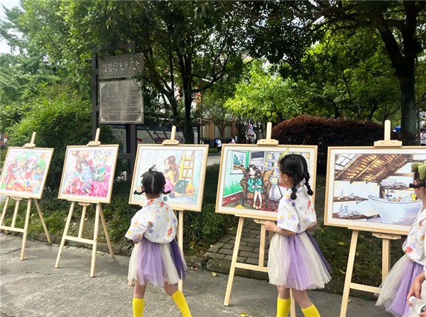 在活動(dòng)現(xiàn)場(chǎng)還特別設(shè)置了展示區(qū),集中呈現(xiàn)了孩子們的繪畫(huà)、手抄報(bào)和書(shū)法作品。他們通過(guò)手中的畫(huà)筆和繽紛的色彩,勾勒出一幅幅充滿生命力的畫(huà)面;用稚嫩卻堅(jiān)定的筆觸,書(shū)寫(xiě)出對(duì)黨的敬仰、對(duì)祖國(guó)的頌揚(yáng)、對(duì)生活的憧憬。這些作品不僅彰顯了孩子們的創(chuàng)造激情,更彰顯了學(xué)校的育人特色和教育哲學(xué)。孩子們用心靈手巧展現(xiàn)了他們的藝術(shù)天賦,同時(shí)也深化了對(duì)藝術(shù)和美的理解。每一幅畫(huà)都洋溢著童真與想象,流露出孩子們對(duì)生活的熱愛(ài)與頌揚(yáng)。這些作品充分展現(xiàn)了學(xué)校五育并舉、全面發(fā)展的教育成果。