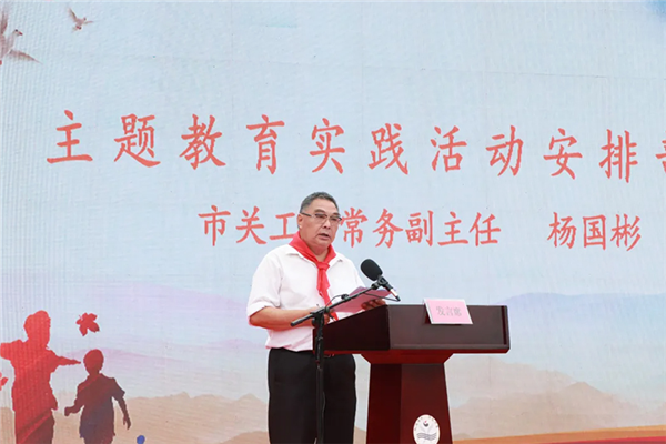 市關(guān)工委常務(wù)副主任楊國(guó)彬?qū)Ρ敬沃黝}教育實(shí)踐活動(dòng)做了詳細(xì)的安排部署,強(qiáng)調(diào)了活動(dòng)的重要性和意義,并希望全體師生能夠積極參與,共同營(yíng)造濃厚的校園文化氛圍。