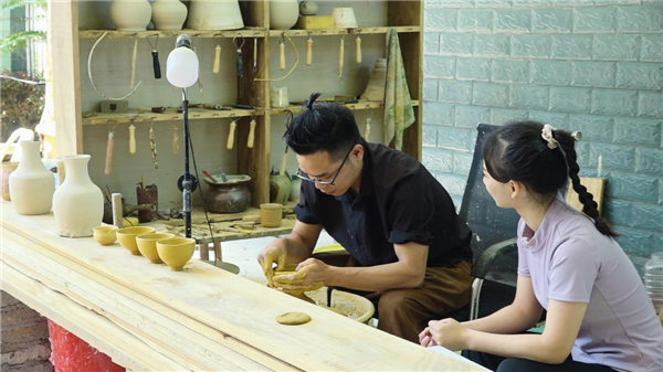 在王周能的工作室,王周能經(jīng)常會接待慕名而來的陶藝愛好者。王周能認(rèn)為,通過講解制瓷技藝,更能拉近年輕人共同探討傳統(tǒng)文化的距離。
