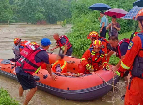 河水猛漲致老人被困洲島 湖南洞口消防緊急救援