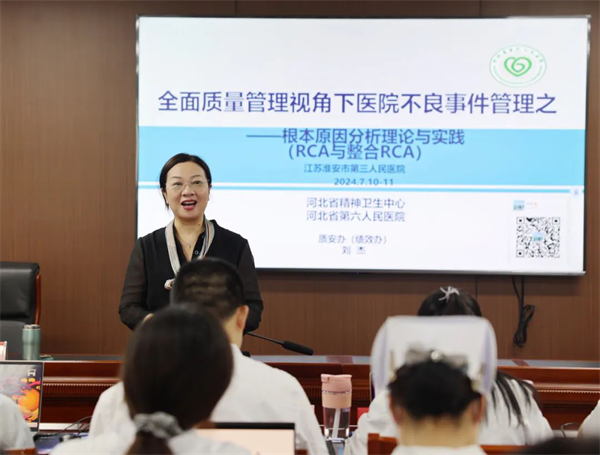 發(fā)布時(shí)間:2024-07-12 14:33:35 | 來(lái)源:中國(guó)網(wǎng) | 作者: | 責(zé)任編輯:?jiǎn)蹄?/span>為提升醫(yī)院的質(zhì)量管理水平,促進(jìn)醫(yī)院持續(xù)、高質(zhì)量發(fā)展,7月10日—7月11日淮安市第三人民醫(yī)院成功舉辦了以“工具賦能提質(zhì)量,思行并進(jìn)學(xué)真章”為主題的質(zhì)量管理工具應(yīng)用培訓(xùn)班。本次培訓(xùn)會(huì)邀請(qǐng)了河北省精神衛(wèi)生中心主任護(hù)師、碩士生導(dǎo)師、質(zhì)安辦主任劉杰老師現(xiàn)場(chǎng)授課。醫(yī)院職能部門主要負(fù)責(zé)人、科主任、護(hù)士長(zhǎng)以及各部門骨干100余人參加培訓(xùn)。