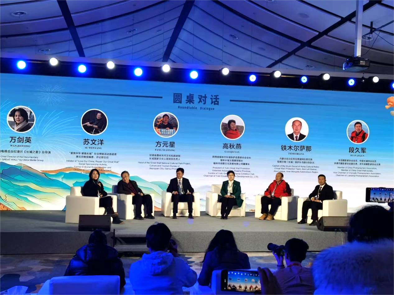 圓桌對話環(huán)節(jié)由中央廣播電視總臺紀(jì)錄片《長城之歌》總導(dǎo)演萬劍英主持。“愛我中華修我長城”社會贊助活動首倡者,原北京晚報編委、評論部主任蘇文洋,甘肅省嘉峪關(guān)市文化和旅游局長城國家文化公園項目負(fù)責(zé)人方元星,陜西省榆林市長城保護(hù)志愿者協(xié)會會長、榆林長城主題展館館長、榆林市創(chuàng)意文化發(fā)展有限公司董事長高秋燕,內(nèi)蒙古自治區(qū)阿拉善盟阿拉善左旗駝峰文物(長城)保護(hù)隊烏銀分隊隊長鐵木爾薩那,灤平縣攝影家協(xié)會主席段久軍,圍繞長城國家文化公園建設(shè)、萬里長城文化遺產(chǎn)保護(hù)傳承等主題進(jìn)行了對話交流。