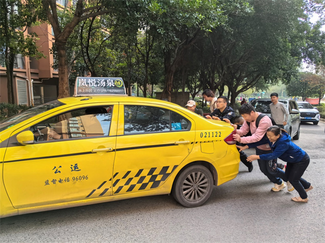 不久后,道路交通得以恢復(fù)暢通,參與推車的民警和群眾也收獲了出租車駕駛員和途經(jīng)車輛司機(jī)的稱贊。