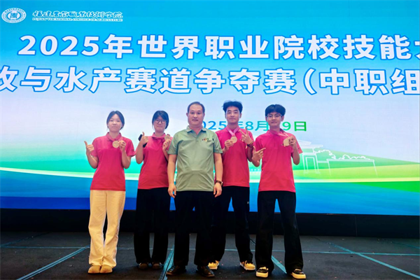 近日,在2025年世界職業(yè)院校技能大賽畜牧與水產(chǎn)賽道(中職組)在福建農(nóng)業(yè)職業(yè)技術(shù)學(xué)院激烈角逐。我校畜禽生產(chǎn)技術(shù)專業(yè)祝晨怡、陳奧晴、孫天宇、董澤金四名同學(xué),在指導(dǎo)教師楊艷廣帶領(lǐng)下,憑借過硬技能與穩(wěn)定發(fā)揮斬獲銀獎,不僅為校爭光,更填補(bǔ)了學(xué)校在世界職業(yè)院校技能大賽中的獲獎空白。