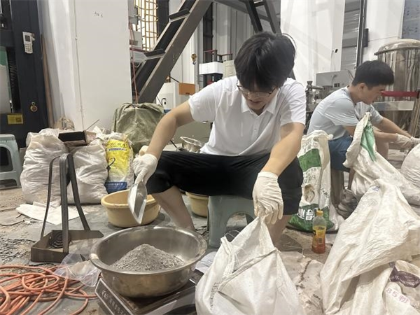 另一分隊成員扎根隧道工程災(zāi)變防控與智能建養(yǎng)全國重點實驗室,開展“赤泥基膠凝材料穩(wěn)定碎石”課題攻關(guān)。從原材料配比、試件制備到長期性能測試,隊員們嚴謹操作、細致記錄,在導(dǎo)師的指導(dǎo)下逐步掌握科研全流程。該研究致力于工業(yè)固廢資源化利用,是團隊積極響應(yīng)“綠色發(fā)展”理念、投身“無廢城市”建設(shè)的切實行動,也為相關(guān)行業(yè)技術(shù)創(chuàng)新提供了有益參考。