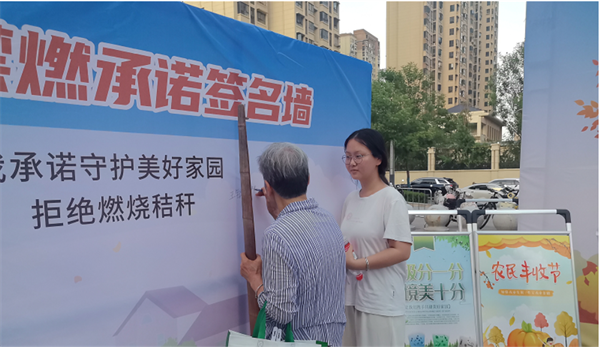 活動(dòng)最后,居民們?cè)凇敖斩捊汲兄Z簽字”墻上鄭重簽下了自己的名字,表達(dá)了遵守秸稈禁燃規(guī)定、共同守護(hù)美好家園的堅(jiān)定決心。這一環(huán)節(jié)不僅是對(duì)個(gè)人環(huán)保責(zé)任的承諾,也是對(duì)社區(qū)環(huán)保行動(dòng)的有力支持。