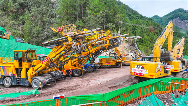 據(jù)中鐵十一局宜涪高鐵項目負(fù)責(zé)人張光武介紹,面對極其復(fù)雜的地質(zhì)和生態(tài)環(huán)境挑戰(zhàn),項目團隊堅持“技術(shù)先行、智能賦能、綠色施工”理念,多措并舉推進工程建設(shè)。項目廣泛應(yīng)用BIM+GIS技術(shù)進行三維可視化建模,實現(xiàn)施工方案模擬優(yōu)化與資源精準(zhǔn)配置。洞口設(shè)立智能信息化控制中心,集成人員定位、瓦斯監(jiān)測、三維可視化超前地質(zhì)預(yù)報、智能鉆爆、智能車輛調(diào)度等系統(tǒng)。智能化裝備方面。引入全電腦三臂鑿巖臺車、拱錨一體臺車、鉆錨注臺車及混凝土噴漿機等智能裝備集群,形成全流程機械化作業(yè)鏈。