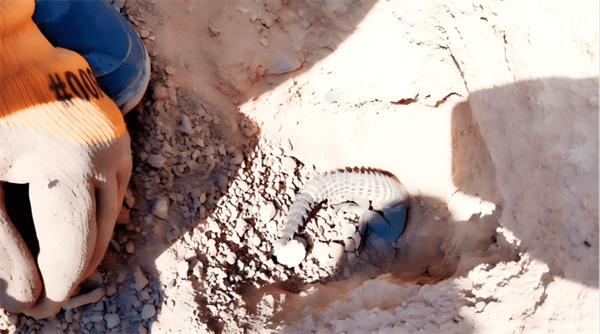 圖為施工中發(fā)現(xiàn)并人工干預(yù)遷移的埃及棘尾蜥個(gè)體(受訪單位供圖)