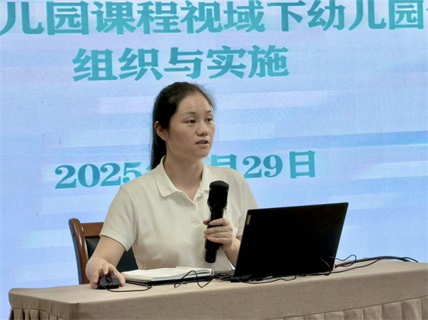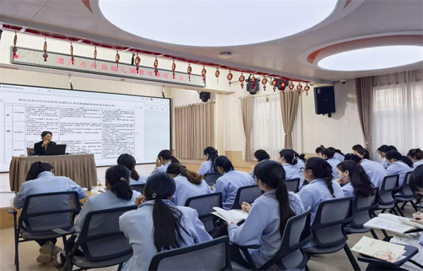 業(yè)務(wù)副園長(zhǎng)鄭娟詳細(xì)講解了食育課程理念,結(jié)合各年齡段目標(biāo),幫助教師們明確了不同年齡段食育活動(dòng)的具體內(nèi)容及教學(xué)方法。她從餐前介紹到廚房探秘,從種植體驗(yàn)到禮儀培養(yǎng),讓健康飲食的觀念如春風(fēng)化雨,浸潤(rùn)童心,使食育課程更加生動(dòng)化、具象化。鄭園長(zhǎng)的專(zhuān)業(yè)引領(lǐng),為教師們提供了科學(xué)的理論指導(dǎo)和豐富的經(jīng)驗(yàn)分享,使教師們對(duì)不同年齡段的食育發(fā)展目標(biāo)、食育課程設(shè)計(jì)、食育活動(dòng)的組織與實(shí)施等方面有了全新的認(rèn)識(shí)。