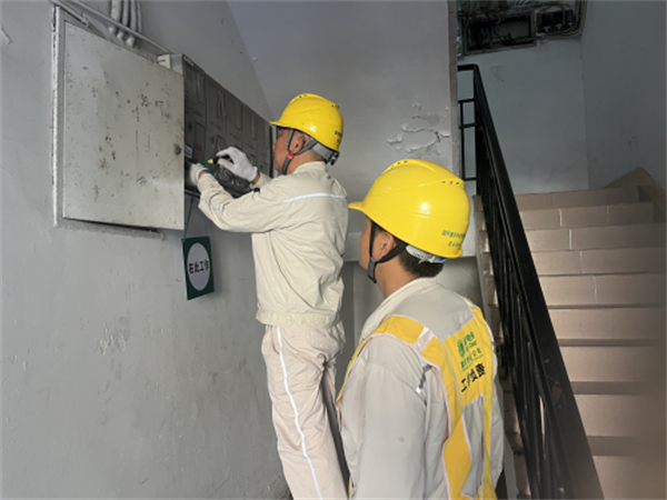 國網(wǎng)重慶市北供電公司員工開展雙節(jié)期間居民社區(qū)用電安全檢查工作。(馬文武攝)