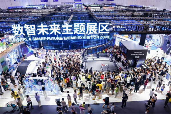 以“數(shù)字貿(mào)易+人工智能”為主線,本屆展會(huì)人工智能展區(qū)面積占比近三分之一,匯聚超330家人工智能企業(yè)?!昂贾萘↓垺钡阮^部科技公司集體亮相,空天數(shù)貿(mào)計(jì)劃首發(fā),AI安全服務(wù)機(jī)器人等重磅產(chǎn)品揭幕。展覽形式突破傳統(tǒng),100個(gè)沉浸式體驗(yàn)點(diǎn)、智能體專區(qū)、機(jī)器人動(dòng)態(tài)展演等創(chuàng)新設(shè)置,讓觀眾得以親身感受具身智能、情感陪伴、AI中醫(yī)診療等前沿應(yīng)用,現(xiàn)場(chǎng)人氣火爆,線上觀展累計(jì)超260萬人次,是現(xiàn)場(chǎng)人次的10倍。