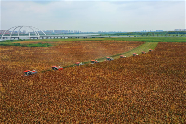 發(fā)布時(shí)間:2025-10-11 15:31:00 | 來(lái)源:中國(guó)網(wǎng) | 作者: | 責(zé)任編輯:孫玥連日來(lái),蘇墾江心沙農(nóng)場(chǎng)位于常州金壇的外拓基地按下收割“快進(jìn)鍵”,8000余畝顆粒飽滿(mǎn)的高粱映紅了錢(qián)姿湖和長(zhǎng)蕩湖畔的,隨著幾臺(tái)聯(lián)合收割機(jī)來(lái)回穿梭,被連稈帶穗盡收“囊”中,收割、摘穗、脫粒、秸稈粉碎、裝車(chē)……好“風(fēng)景”變成好豐收。