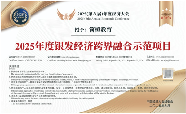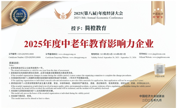 (簡橙榮獲中國經(jīng)濟大會教育產(chǎn)業(yè)論壇-“2025年度中老年教育影響力企業(yè)” )