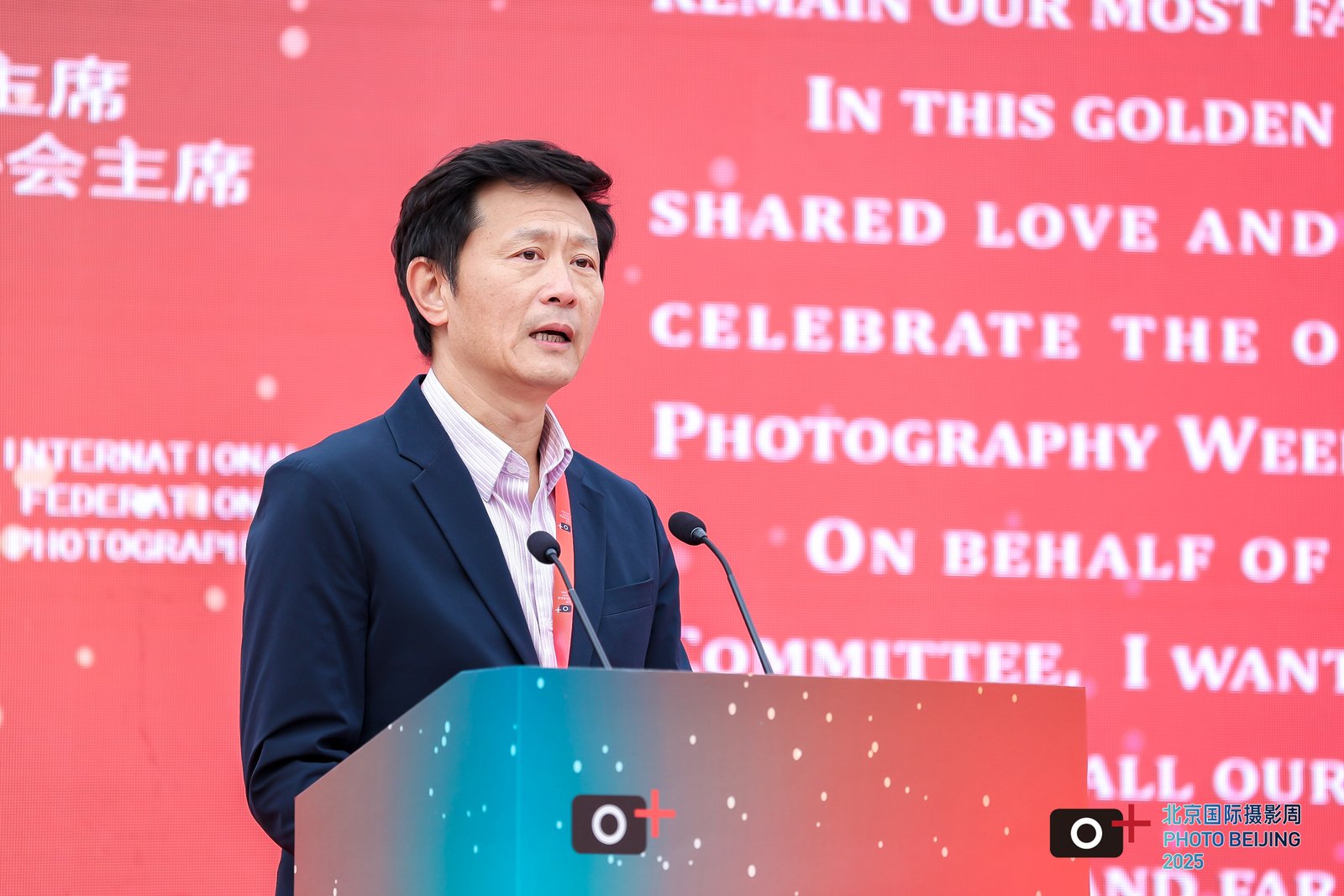 開(kāi)幕式上,北京國(guó)際攝影周組委會(huì)主席李舸、國(guó)際攝影藝術(shù)聯(lián)合會(huì)(FIAP)副主席鄭培書(shū)、國(guó)際攝影家聯(lián)盟(GPU)主席馬諾利斯·米察基斯、韓國(guó)寫(xiě)真作家協(xié)會(huì)理事長(zhǎng)兪琇燦分別致辭。