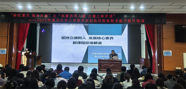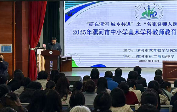 為進(jìn)一步推動(dòng)漯河市美術(shù)教育高質(zhì)量發(fā)展,促進(jìn)城鄉(xiāng)教育資源共建共享,10月20日下午,由漯河市教育教學(xué)研究室主辦、漯河市第二高級(jí)中學(xué)承辦的“2025年漯河市中小學(xué)美術(shù)學(xué)科教師教育教學(xué)能力提升培訓(xùn)”在漯河市第二高級(jí)中學(xué)明德廳順利舉行。本次活動(dòng)以“城鄉(xiāng)共進(jìn)、名師引領(lǐng)”為主題,吸引了全市眾多美術(shù)教師參與,共同探索美術(shù)教育的新理念、新路徑。