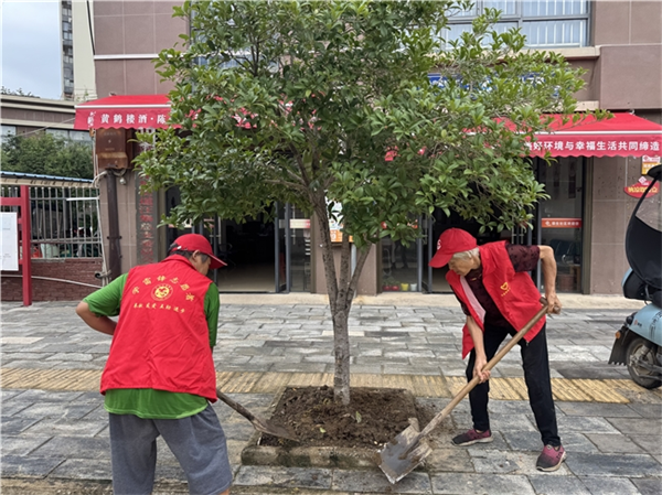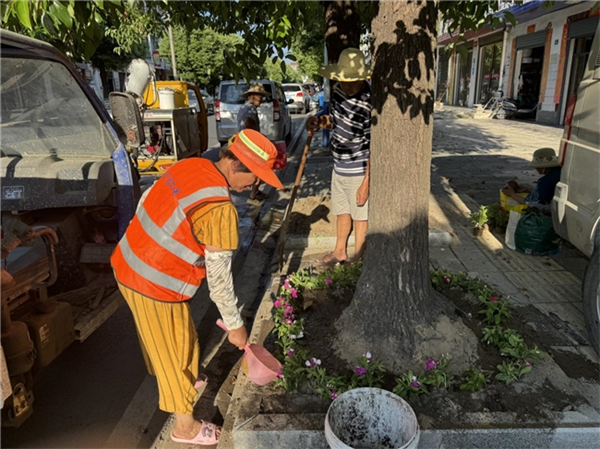 七月起,社區(qū)陸續(xù)試驗(yàn)多個花種,最終選定耐活、花期長的長春花,作為街道美化主打品種。隨后,汪集街道組織城管隊(duì)員、社區(qū)工作者、環(huán)衛(wèi)工人、志愿者分工協(xié)作,清運(yùn)垃圾雜物、翻松板結(jié)土壤、移栽花苗,還在花壇周邊增設(shè)分類垃圾桶,引導(dǎo)居民規(guī)范投放。為防止問題反彈,創(chuàng)新推出“樹穴認(rèn)領(lǐng)”機(jī)制,發(fā)動商戶、住戶成為“花長”,負(fù)責(zé)門前花卉的日常照料。志愿者們定期澆水、除草、清理落葉,城管、環(huán)衛(wèi)巡查工作時也“順手”護(hù)綠,一種“共治共管、花開共享”的新風(fēng)尚正蔚然成風(fēng),形成“環(huán)境美化+蚊蟲防控”的雙重保障。靠近武漢問津職業(yè)學(xué)校的榮生路南段,則由花卉專業(yè)的學(xué)生負(fù)責(zé),他們種上了紅掌等特色花卉,為街道添了一筆青春的亮色。