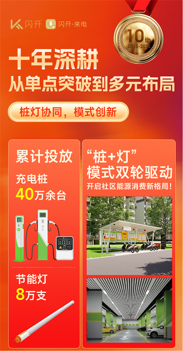 激烈市場競爭下,閃開持續(xù)創(chuàng)新,推出“樁+樁+燈”組合模式,有效打通社區(qū)能源消費(fèi)場景,即以電動自行車充電樁和新能源車充電樁為雙輪驅(qū)動,整合節(jié)能燈資源,帶動社區(qū)能源消費(fèi)板塊協(xié)同發(fā)展,該模式不僅更好滿足社區(qū)、校園、商業(yè)場所等不同場景的能源需求,也進(jìn)一步推動了“運(yùn)營商-場地方-閃開”三方共贏的可持續(xù)生態(tài)。