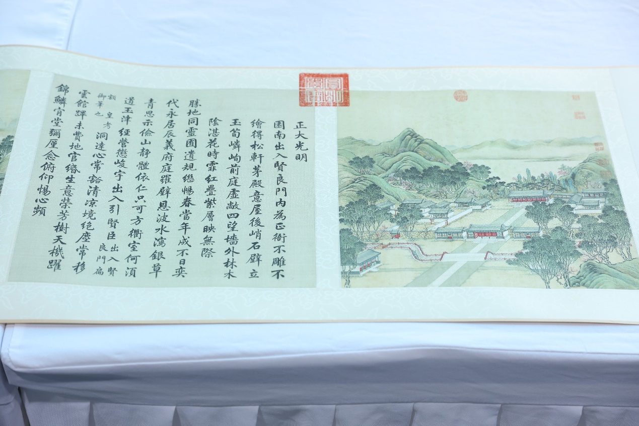 據(jù)了解,《四十景圖》畫成之后,由乾隆御筆題詩,由工部尚書汪由敦書寫,圖畫繪工精美,直觀效果極佳。所繪建筑、泉石等景觀都為寫實(shí)風(fēng)格,題詩意境深遠(yuǎn),書法雋永飄逸,詩、書、畫達(dá)到了統(tǒng)一。這是我國成就最高的工筆彩畫。1860年,英法聯(lián)軍火燒圓明園時(shí),這套珍貴的彩繪圖被侵略者掠走,現(xiàn)存于法國巴黎國家圖書館。(主辦方供稿)