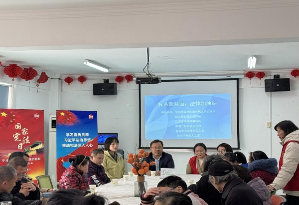 為迎接第十二個國家憲法日的到來,弘揚(yáng)憲法精神,營造濃厚的憲法宣傳氛圍,近日,中建二局華東公司江蘇分公司法律事務(wù)部聯(lián)合南京景明佳園社區(qū)新時代文明實(shí)踐站、鐵心橋街道康寧驛站、南京市春和殘疾人之家開展了一場主題為“權(quán)益面對面,法律加油站”的公益法律座談。