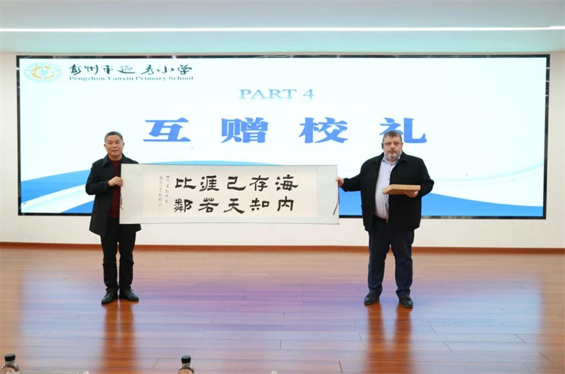 筆墨載心意,千里共比鄰。在溫馨的氛圍中,李先義書(shū)記與白俄羅斯明斯克州教育發(fā)展研究中心主任達(dá)拉本尼亞·佛洛達(dá)先生互贈(zèng)校禮。