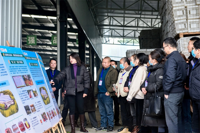 上午參訪團(tuán)抵達(dá)蒲江縣大興鎮(zhèn)水口村。作為川內(nèi)知名的柑橘種植專業(yè)村和農(nóng)村直播帶貨標(biāo)桿村,水口村“產(chǎn)業(yè)興村、科技賦能、品牌引領(lǐng)”的發(fā)展思路讓代表們眼前一亮。在柑橘種植基地,代表們認(rèn)真聆聽技術(shù)負(fù)責(zé)人講解優(yōu)質(zhì)品種引進(jìn)、標(biāo)準(zhǔn)化田間管理、病蟲害綠色防治等核心技術(shù),實(shí)地查看柑橘生長態(tài)勢(shì),詳細(xì)詢問從種植到采收儲(chǔ)存的全流程規(guī)范體系。得知水口村通過規(guī)?;N植、品牌化運(yùn)營,讓柑橘成為村民致富的“黃金果”,代表們紛紛駐足記錄,圍繞本土特色農(nóng)產(chǎn)品培育與技術(shù)升級(jí)展開交流。