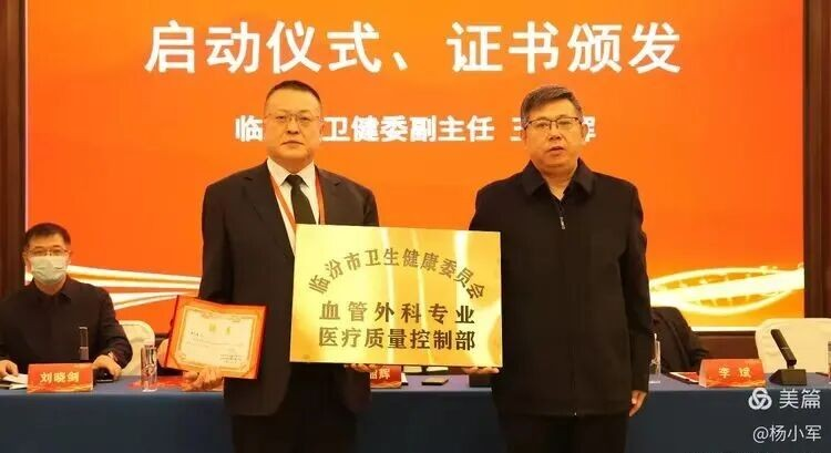在成立大會(huì)上,王韶輝為臨汾市人民醫(yī)院血管外科主任郭三喜頒發(fā)臨汾市衛(wèi)健委血管外科專業(yè)質(zhì)控部牌匾、主任證書,并在講話中指出,希望血管外科專業(yè)質(zhì)控部以規(guī)范為基、以質(zhì)量為魂,以提升區(qū)域血管外科診療水平為目標(biāo),加強(qiáng)學(xué)術(shù)交流、推廣標(biāo)準(zhǔn)規(guī)范、強(qiáng)化質(zhì)量監(jiān)管,為保障人民群眾身體健康作出更大貢獻(xiàn)。