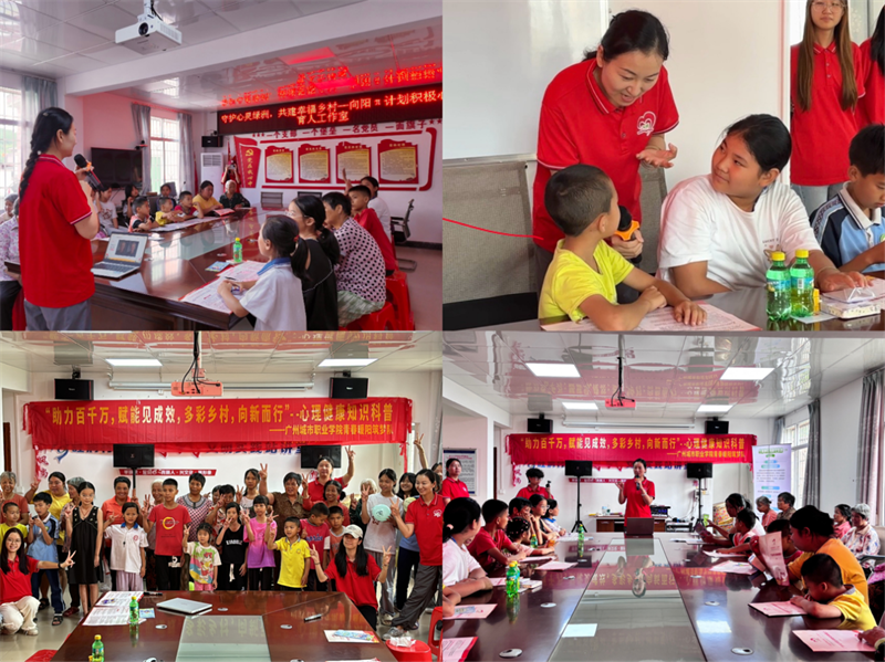 立足學用轉(zhuǎn)化、雙向賦能,工作室構(gòu)建“社會服務(wù)-素養(yǎng)升華”的實踐育人模式,讓心理育人走出校園,在服務(wù)社會的真實場景中彰顯價值。2025年暑假,由工作室主持人及 10名學生組成的實踐團隊,深入連山壯族瑤族村落開展心理健康幫扶行動,不僅帶去心理科普知識,更針對性推出基于積極心理學理念的鄉(xiāng)村心理支持方案。針對當?shù)亓羰貎和簧谜Z言表達情緒的問題,團隊創(chuàng)新設(shè)計“情緒顏色卡”工具,引導孩子們用色彩表達心情、用圖畫講述故事;同時關(guān)注鄉(xiāng)村“一老一小”群體心理需求,耐心傾聽老人心聲、陪伴兒童成長,讓團隊成員記憶猶新的是:“那位總是獨自坐在村口的奶奶,在我們離開前主動教我們唱山歌,她說已經(jīng)很久沒人這么耐心聽她說話了?!贝舜螌嵺`不僅為當?shù)靥峁┝司珳市睦碇С?,完?200余份鄉(xiāng)村心理現(xiàn)狀調(diào)研,更讓學生實現(xiàn)深刻成長。團隊成員均表示,對心理健康服務(wù)他人、賦能社會的價值理解發(fā)生根本轉(zhuǎn)變。以所學服務(wù)社會,以實踐深化所學,既讓心理素養(yǎng)在真實貢獻中落地生根,更實現(xiàn)了學生成長、社會受益的雙向賦能,彰顯了心理育人的社會價值。