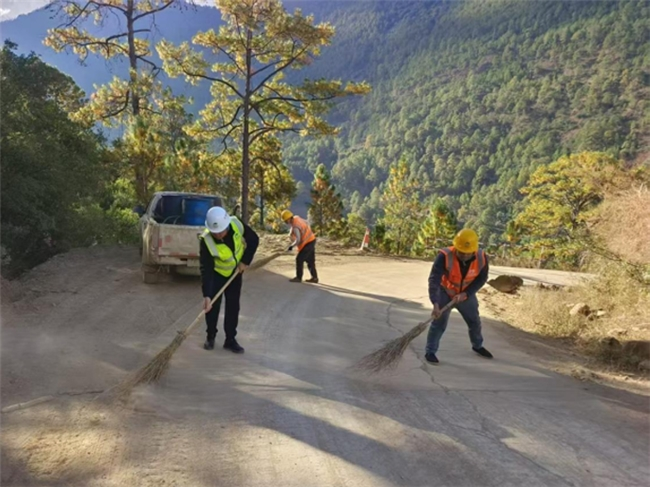 那是一個大風(fēng)呼嘯的午后,強(qiáng)風(fēng)卷著沙塵,掠過山脊,撲向村莊。項目沿線幾段村道,很快被斷枝與黃沙覆蓋,出行的村民望著路面,眉頭緊鎖。消息傳到項目部,項目負(fù)責(zé)人立刻召集了幾名項目員工:“路上不安全,咱們?nèi)兔η逡磺濉?!沒有猶豫,一行人帶著鐵鍬、掃帚,頂著風(fēng)沙走向村道。