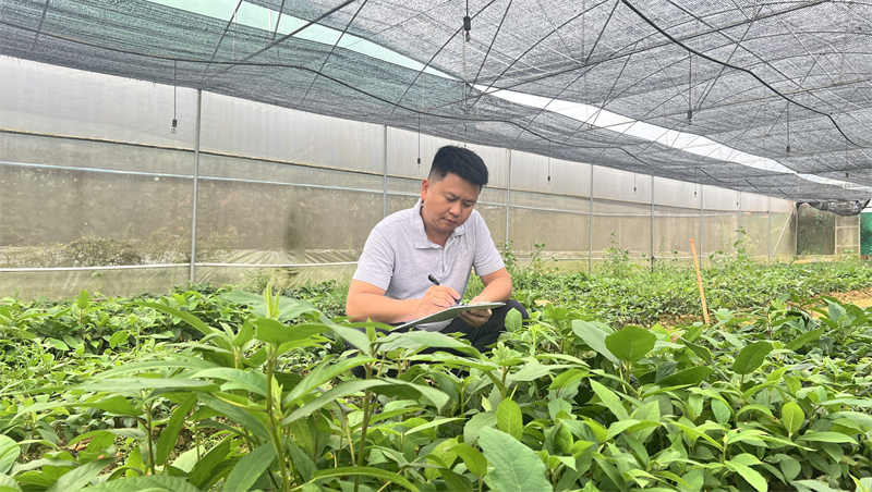 圖:黃良強(qiáng)深入古池育苗基地對(duì)瑤藥種苗生長(zhǎng)狀態(tài)進(jìn)行記錄