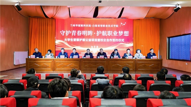 12月13日,在甘肅省歸國(guó)華僑聯(lián)合會(huì)、白銀市委統(tǒng)戰(zhàn)部、白銀市僑聯(lián)統(tǒng)籌協(xié)調(diào)指導(dǎo)下,蘭州華廈眼科醫(yī)院與白銀希望職業(yè)技術(shù)學(xué)院聯(lián)合主辦的“守護(hù)青春明眸,護(hù)航職業(yè)夢(mèng)想”大學(xué)生愛(ài)眼護(hù)眼公益項(xiàng)目暨校企合作活動(dòng)在白銀希望職業(yè)技術(shù)學(xué)院隆重舉行。甘肅省僑聯(lián)主席袁斌才,白銀市委副書(shū)記、統(tǒng)戰(zhàn)部部長(zhǎng)張麟,白銀市僑聯(lián)主席劉春梅,白銀市委副秘書(shū)長(zhǎng),辦公室副主任羅乾之,華廈眼科醫(yī)院集團(tuán)甘肅區(qū)域總院長(zhǎng)燕振國(guó),總經(jīng)理孟愛(ài)萍,業(yè)務(wù)院長(zhǎng)魏建蘭,白銀希望職業(yè)技術(shù)學(xué)院黨委書(shū)記張富榮,校長(zhǎng)周雅順以及白銀市僑聯(lián)、學(xué)校、醫(yī)院代表、媒體朋友等參加了啟動(dòng)儀式,白銀市僑聯(lián)黨組書(shū)記馬玉福主持儀式。