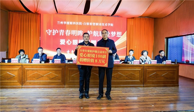 白銀希望職業(yè)技術(shù)學(xué)院校長(zhǎng)周雅順首先致辭,他對(duì)各級(jí)僑聯(lián)、白銀市委統(tǒng)戰(zhàn)部及蘭州華廈眼科醫(yī)院的關(guān)心支持表示衷心感謝?!扒嗌倌暌暳】凳顷P(guān)乎人才培養(yǎng)的重要議題,我校視光專業(yè)學(xué)子的成長(zhǎng)更是離不開(kāi)優(yōu)質(zhì)醫(yī)療資源的賦能。”周校長(zhǎng)表示,此次公益捐贈(zèng)與校企合作,既為家庭困難學(xué)生解決了實(shí)際難題,更為學(xué)校視光等專業(yè)建設(shè)搭建了優(yōu)質(zhì)平臺(tái),學(xué)校將以此為契機(jī),充分利用實(shí)訓(xùn)基地與專家資源,深化產(chǎn)教融合,培養(yǎng)更多符合行業(yè)需求的視光專業(yè)人才。
